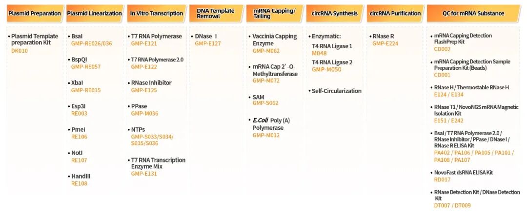 图一.近岸蛋白mRNA酶及试剂产品线
